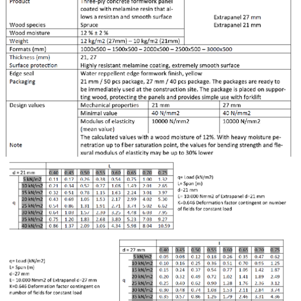 Betónové debniace panely sú kvalitné, 3-vrstvové drevené panely, vyrobené zo smreku. Panely sú úplne pokryté vysoko odolnou melamínovou živicou, čo im poskytuje vynikajúcu ochranu. Väčšinou sa používajú na betónové debnenie, ale vďaka svojej výnimočnej funkčnosti sa dajú použiť aj na iné účely. 3-vrstvové žlté melamínové panely umožňujú prenos dreveného zrna na betónový podhľad a pri ich použití poskytujú hladšie povrchové úpravy.